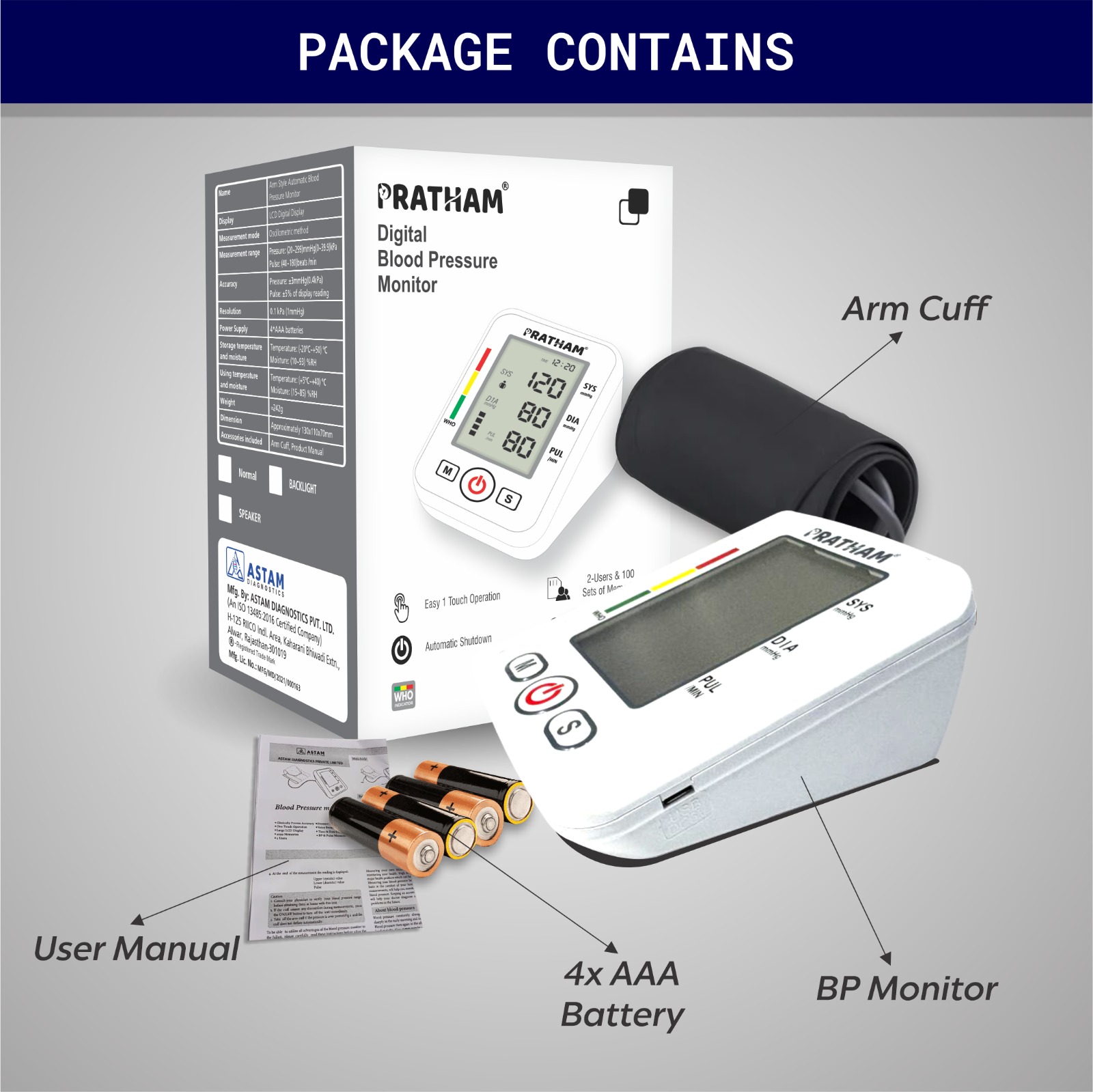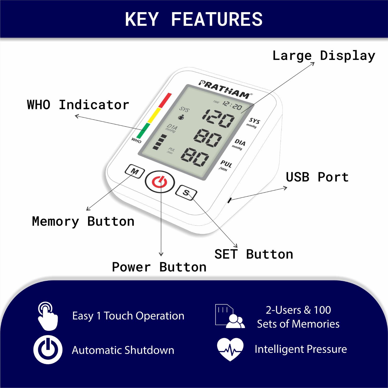 Automatic Blood Pressure (BP) monitor is intended for non-invasive measurement of arterial blood pressure and pulse values on the upper arm in adults. It can be used at home for independent monitoring of blood pressure and pulse, especially for individuals with hypertension or hypotension. The monitor typically uses the oscillometric method, detecting pressure changes in the brachial artery and converting them into a digital reading.
